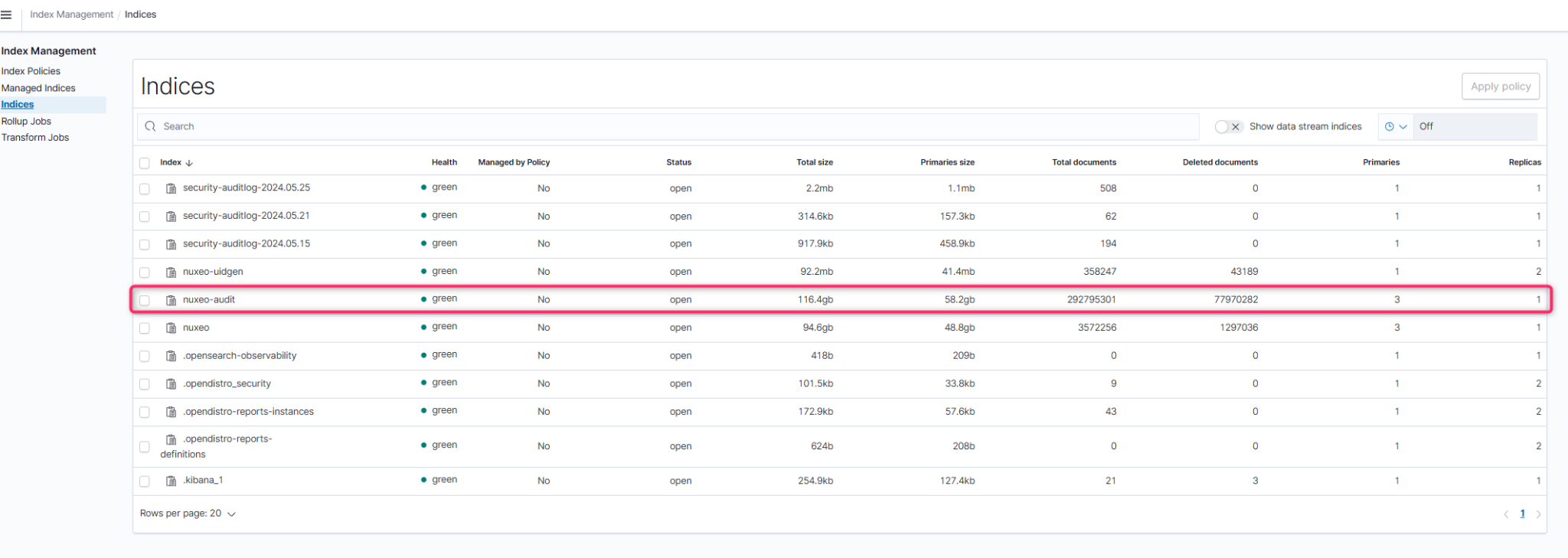 Today, the index “nuxeo-audit” still shows ~3 billion documents, but around ~78 million documents are now marked as “deleted”, and almost all pre-May-2024 events are missing.